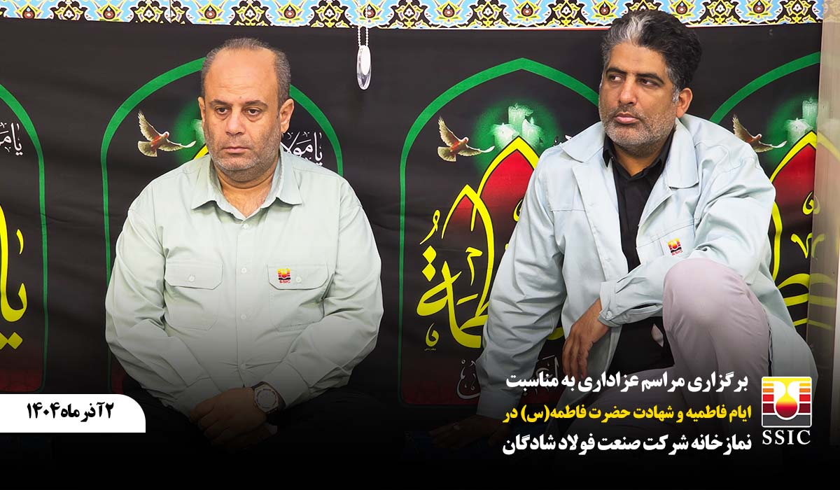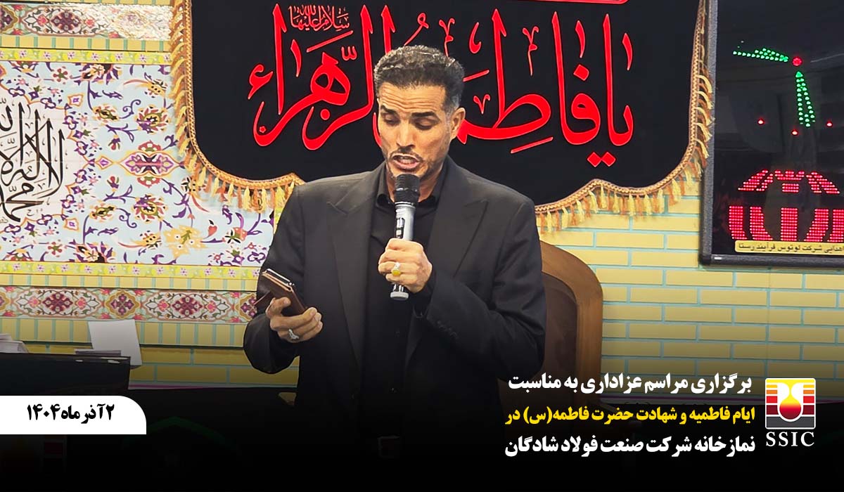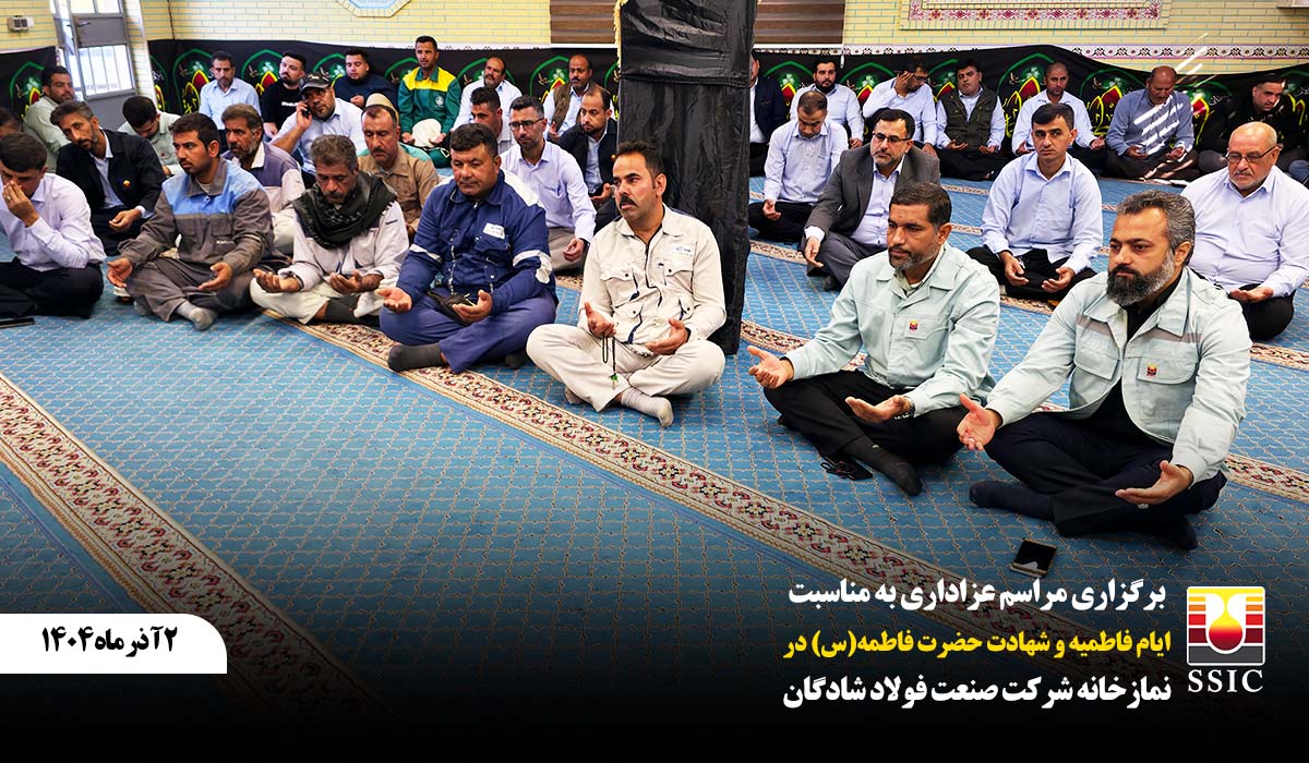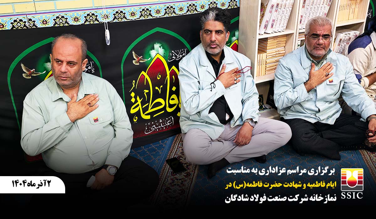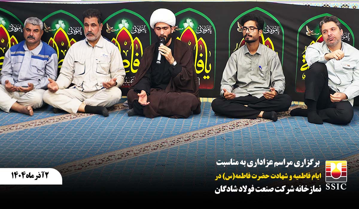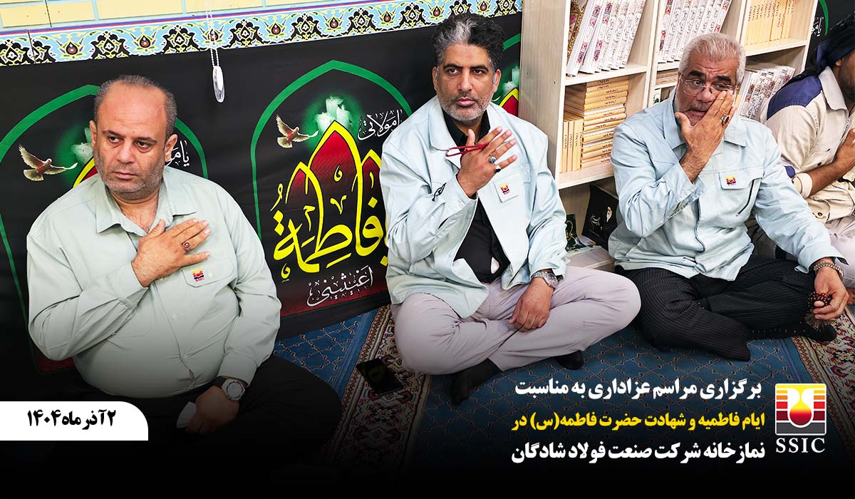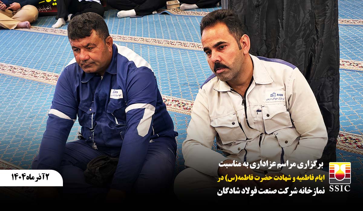 مراسم معنوی عزاداری به مناسبت ایام فاطمیه و سالروز شهادت حضرت فاطمه زهرا‌(س) روز یکشنبه ۲ آذر ۱۴۰۴ از ساعت ۸:۰۰ صبح آغاز و در ساعت ۹:۳۰ به پایان رسید و در نمازخانه شرکت صنعت فولاد شادگان برگزار شد.