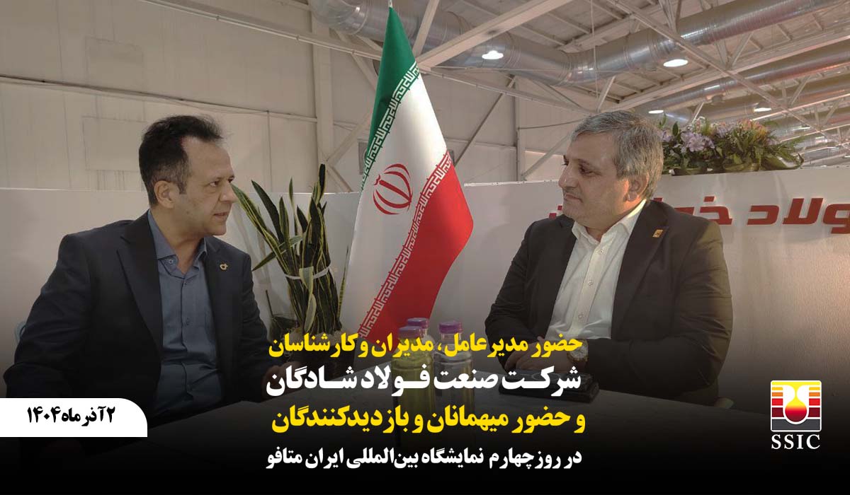 حضور مدیرعامل، مدیران و کارشناسان شرکت صنعت فولاد شادگان و حضور میهمانان و بازدیدکنندگان در روز چهارم نمایشگاه بین‌المللی ایران متافو