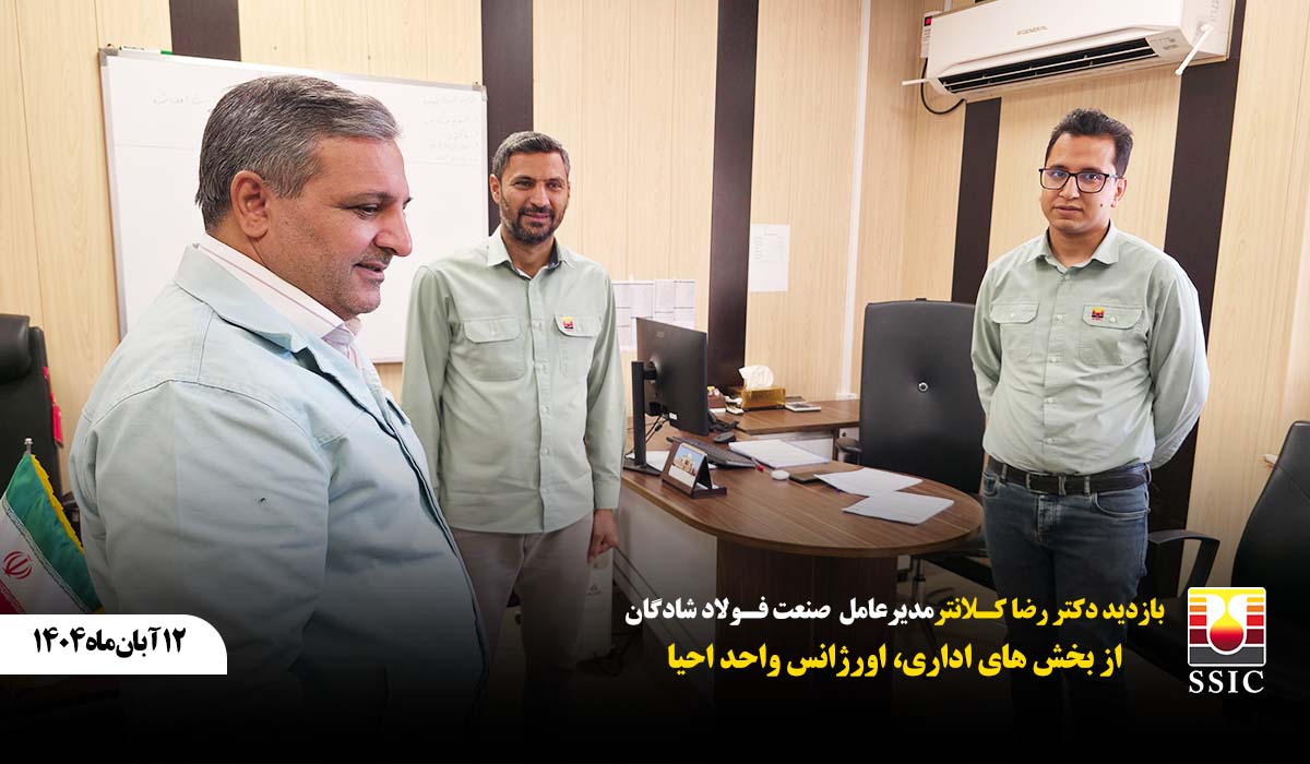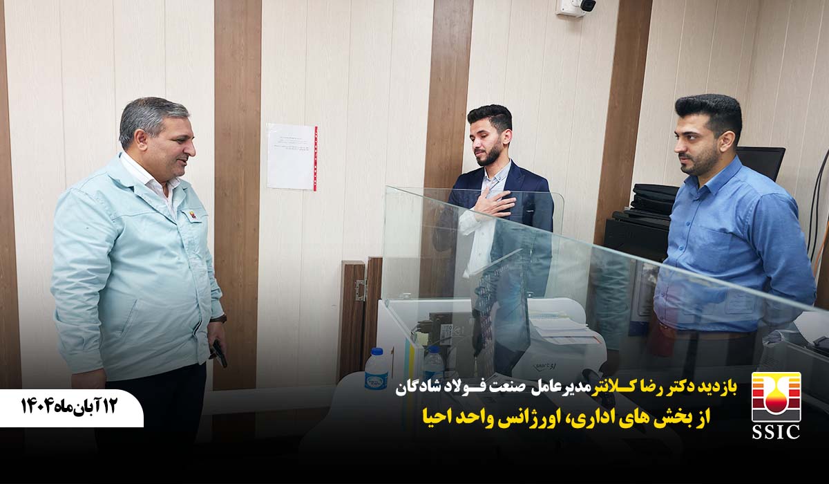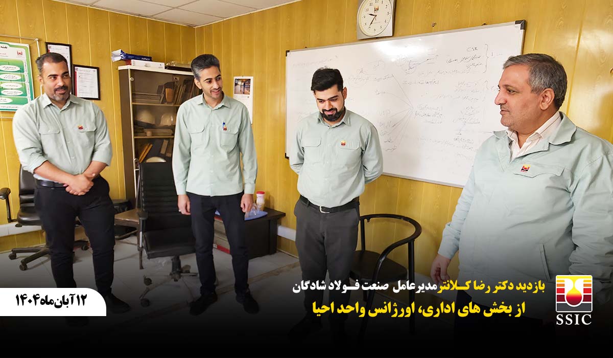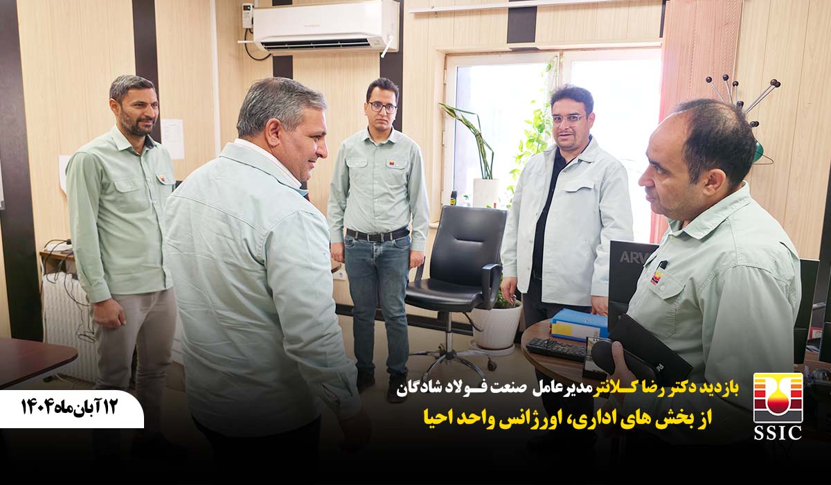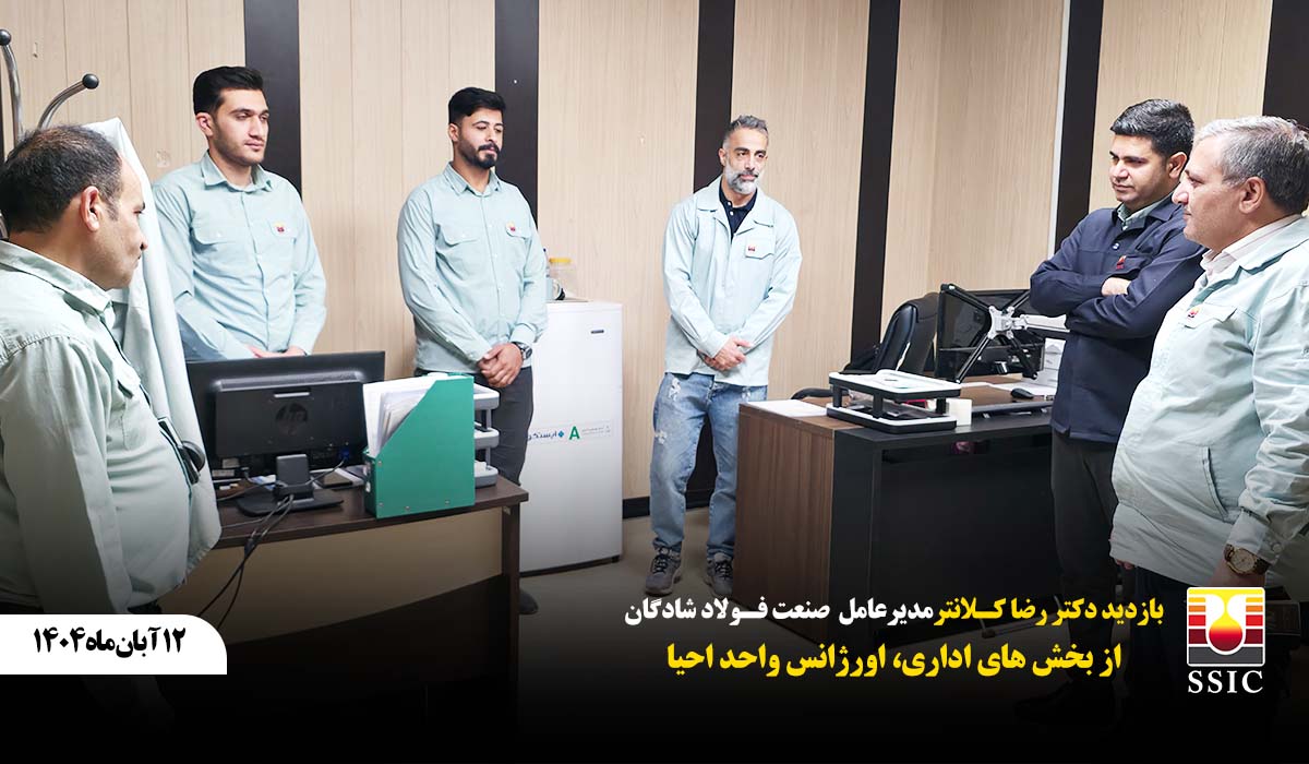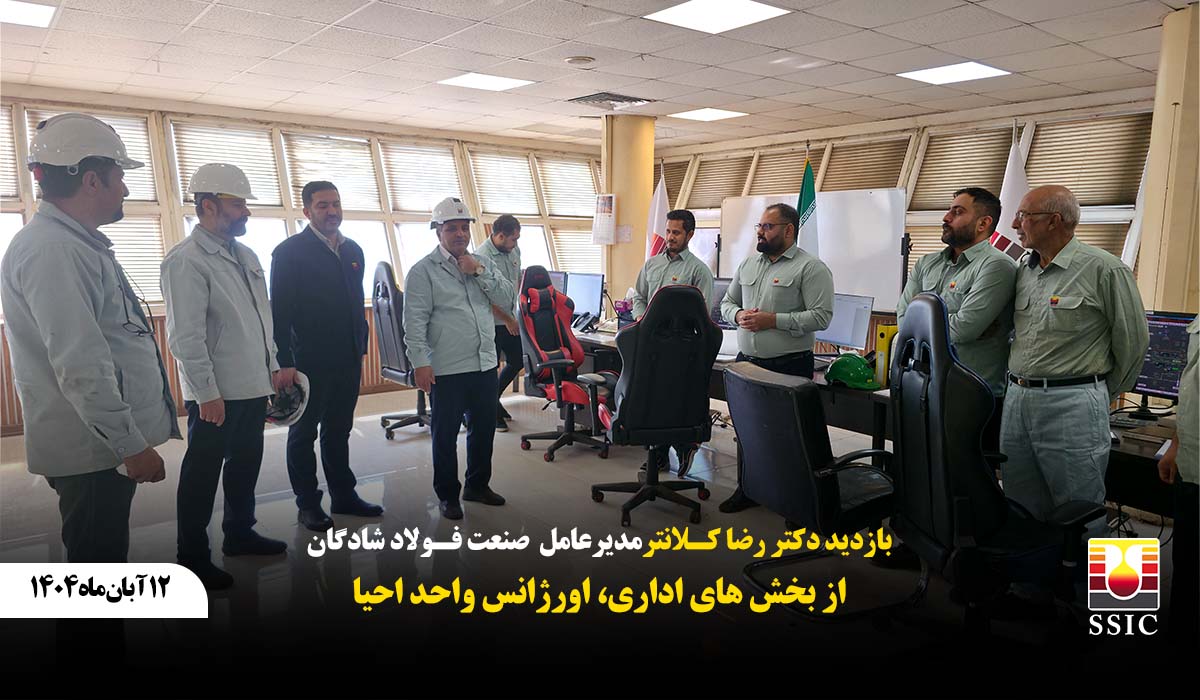 به گزارش خبرنگار روابط‌عمومی، امروز ۱۲ آبان ۱۴۰۴، دکتر کلانتر، مدیرعامل شرکت صنعت فولاد شادگان، از بخش‌های احیا، اداری و اورژانس شرکت بازدید کرد.