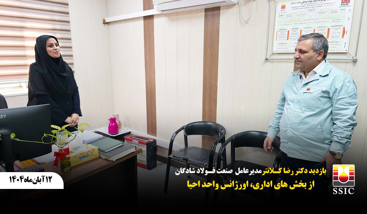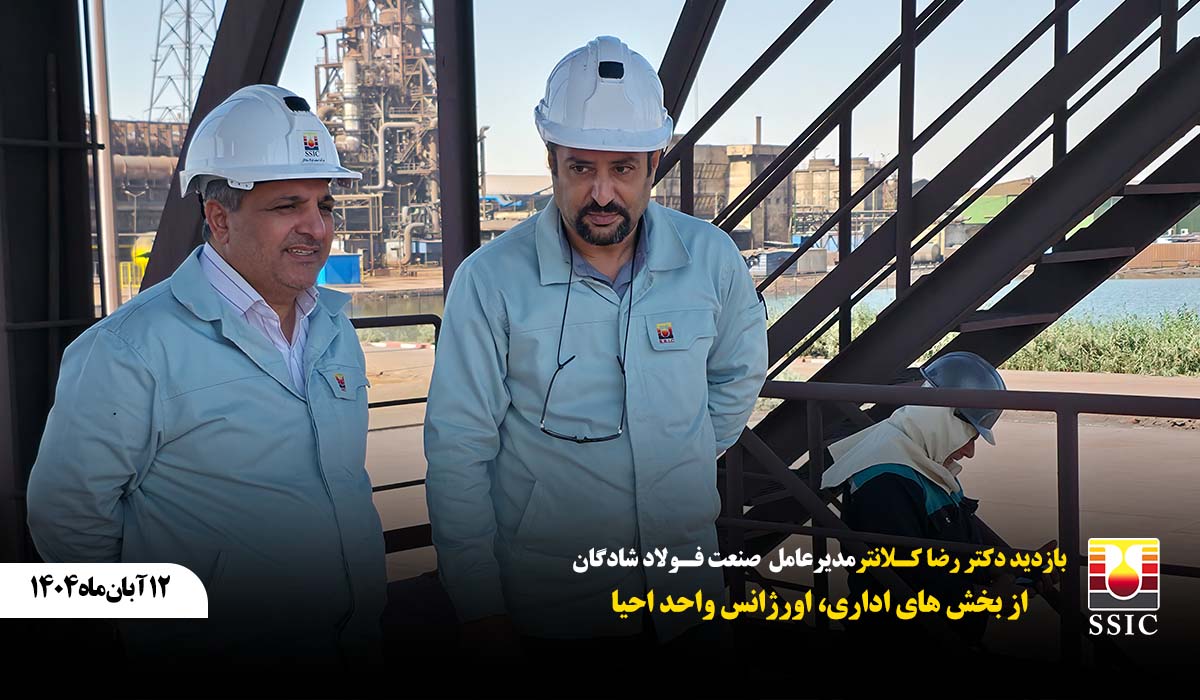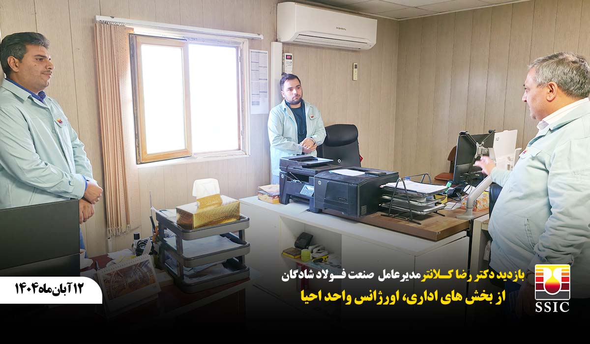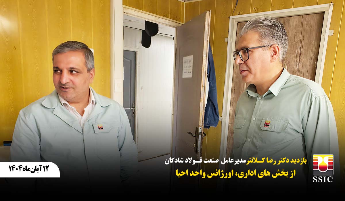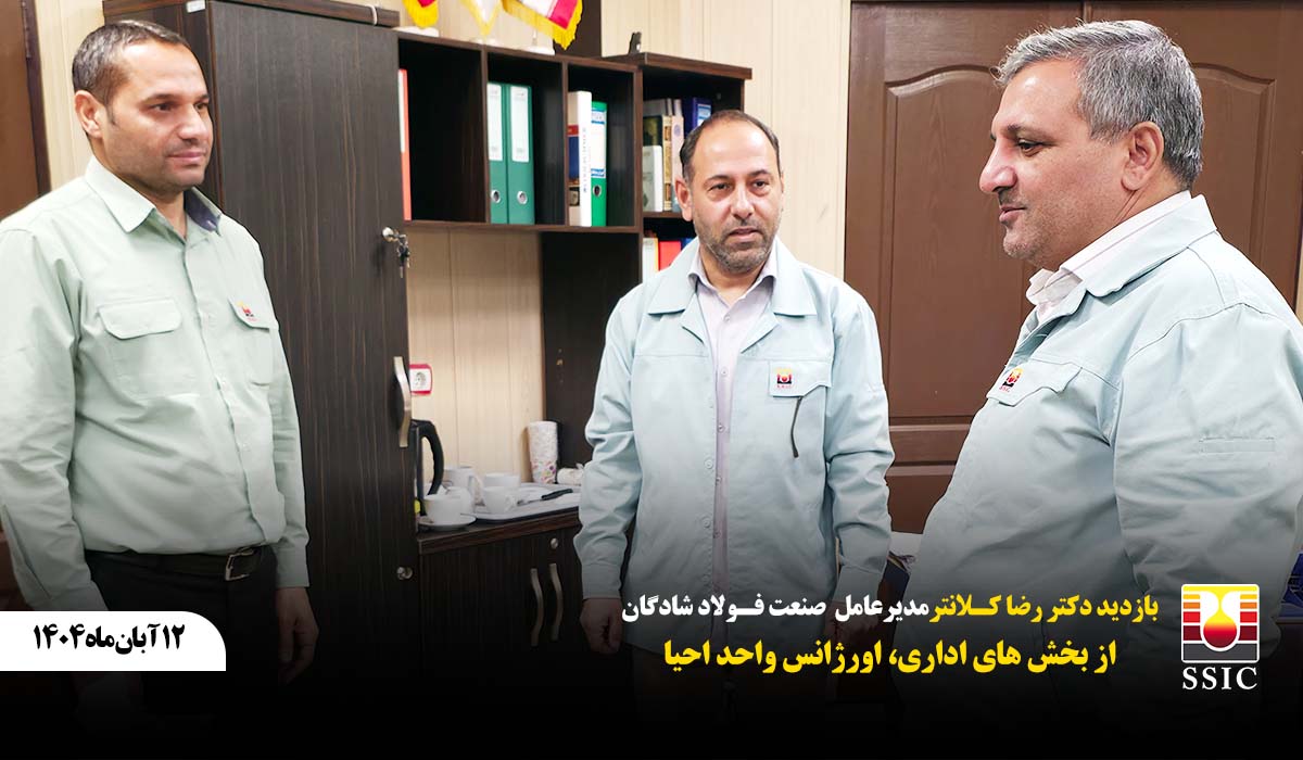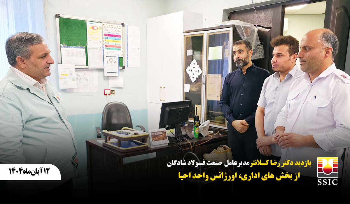 به گزارش خبرنگار روابط‌عمومی، امروز ۱۲ آبان ۱۴۰۴، دکتر کلانتر، مدیرعامل شرکت صنعت فولاد شادگان، از بخش‌های احیا، اداری و اورژانس شرکت بازدید کرد.