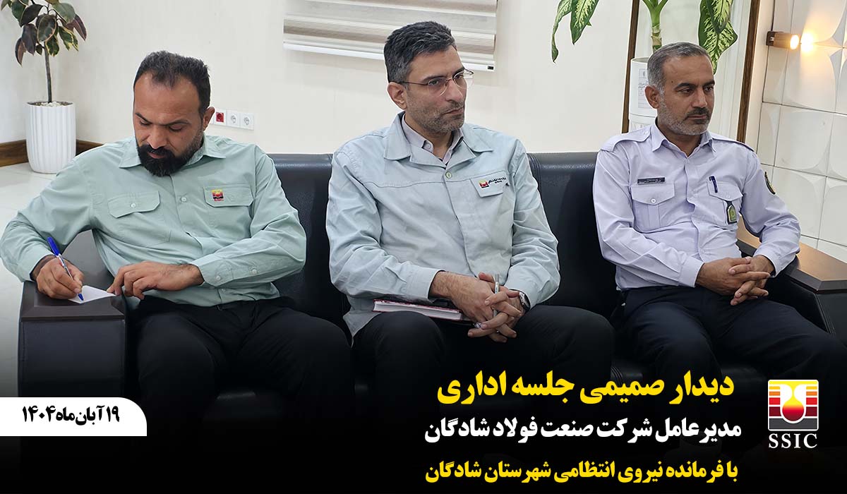 این دیدار صمیمی به مناسبت انتخاب دکتر کلانتر به سمت مدیرعاملی شرکت فولاد شادگان برگزار شد و سرهنگ عشیری طی این ملاقات، انتصاب ایشان را تبریک گفت و موفقیتهای روزافزون برای توسعه و رشد شرکت آرزو کرد.